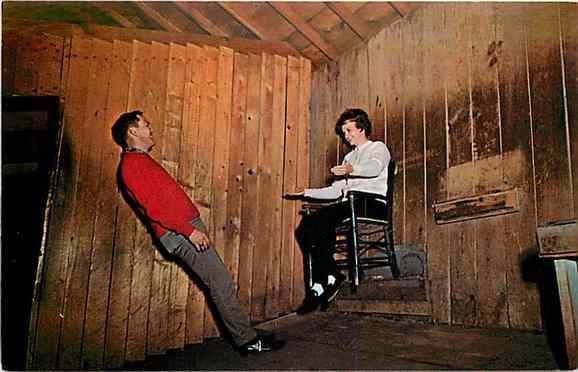 To make the Mystery House seem even more convincing, they deliberately place physically distorted objects throughout it to reinforce your perception of normality or make you believe you are standing on perfectly flat ground.