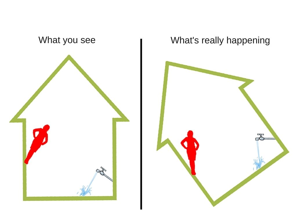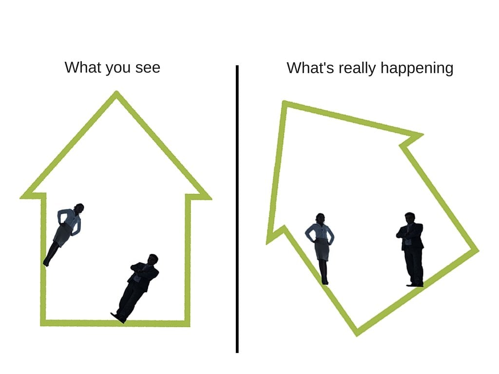 But for the people in the house, the components of the environment that would help them perceive their spatial position correctly are the precise details that prevent them from doing so.