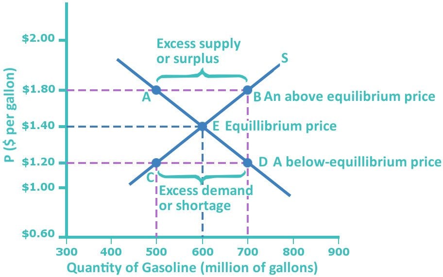 In these ways, a surplus or shortage coerces the market forces to drop or raise prices.