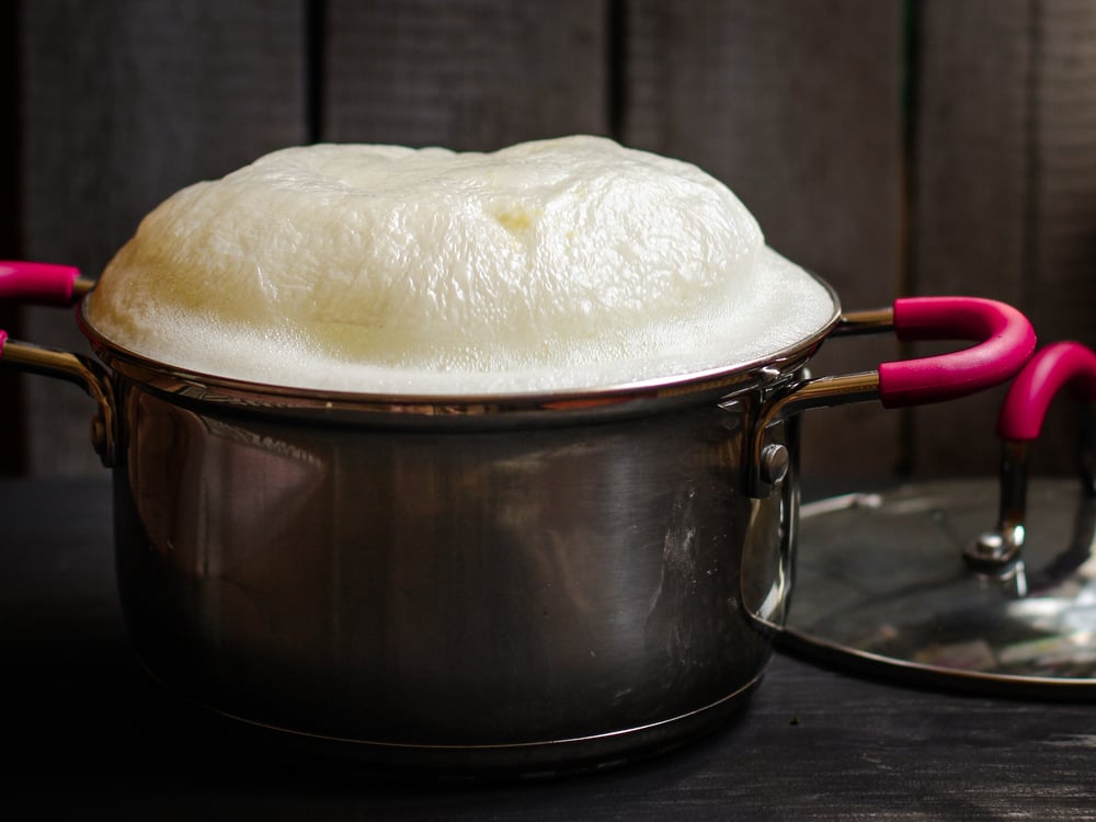 One rather interesting way to stop this spillover is by using a wide pan. The way this works is by allowing the bubbles formed by water vapor trapped in the coagulated substance to become too big to be stable. It’s a lot like a bubble popping when you try to make it too impressively large!