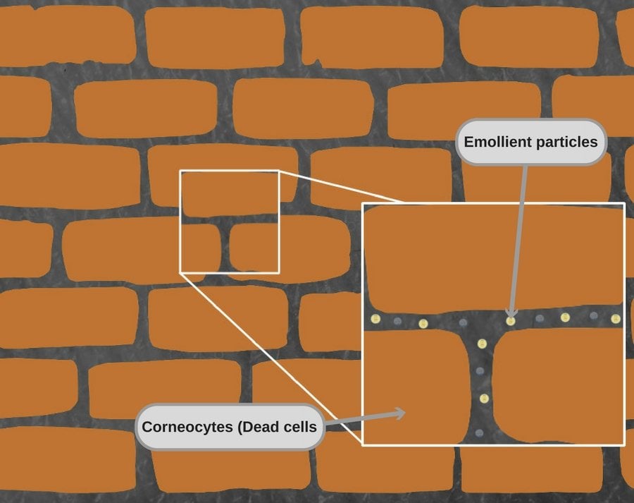 While occlusives simply form a barrier on the outermost layer, emollients actually penetrate the skin and fill the gaps between cells that are missing fatty layers of lipids.