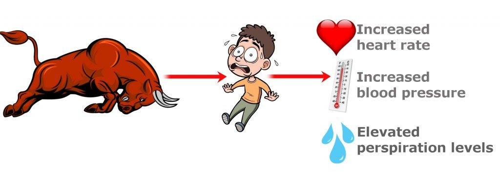 According to the James-Lange theory, external stimuli in the environment is received and decoded by the brain, but even before you consciously process it, your body is already responding with physiological changes, such as a rise in heart rate, alteration in blood pressure or even pupillary contractions/expansions. Thus, the emotions you develop are actually based on these physiological changes.