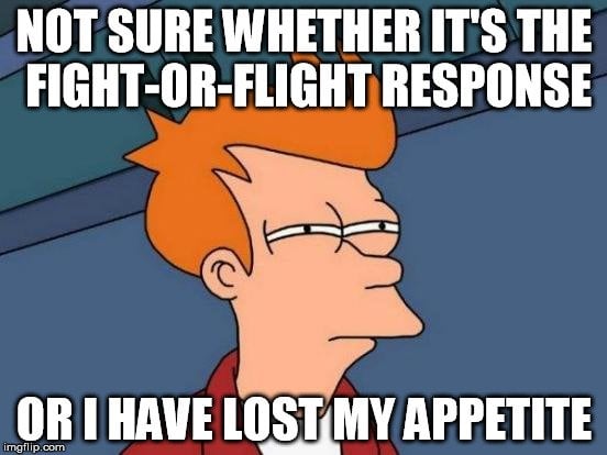 Once the body enters the fight-or-flight mode, it turns a ‘blind eye’ towards most of its other not-so-critical needs (like hunger) and focuses all its resources on either directly engaging with the threat (fight) or avoiding it in one way or the other (flight). Therefore, being face to face with a dangerous situation invariably kills one’s appetite for the time being.