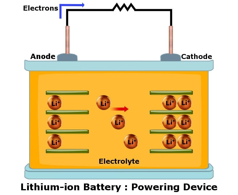 Lithium-ion batteries, commonly known as Li-ion batteries, use Lithium ions as a crucial component in their electrochemistry. Like any other battery, a Li-ion battery has two terminals – the anode and cathode – separated by an electrolyte – a liquid that can conduct electricity by dissociating into ions in a solution.