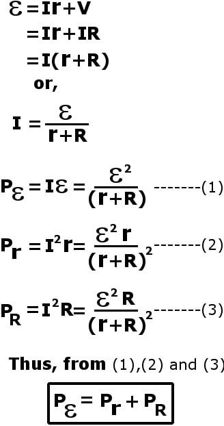 A resistor dissipates energy in the form of heat. We can observe this with internal resistance as well. One can show that a small amount of ε’s power is spent on the internal resistance r, while the remaining is transferred to the load R.