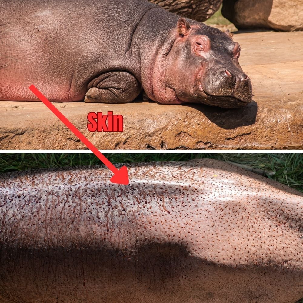 Hippopotamuses secrete blood-like sweat that protects their hairless skin from the harsh sun. The sweat is highly alkaline, with a pH range of 8.5-10.5, as compared to our sweat with a pH of around 6.3. That said, this secretion isn’t really sweat, so to speak. The viscous liquid is secreted from a subdermal gland, not from a sweat gland.