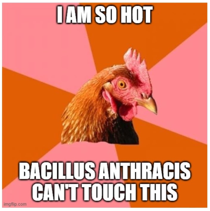 This disease can be fatal in humans and cattle, but interestingly enough, chickens are entirely immune to it. The high body temperature of a chicken, as compared to humans or cattle, ensures that the bacteria cannot survive inside them.