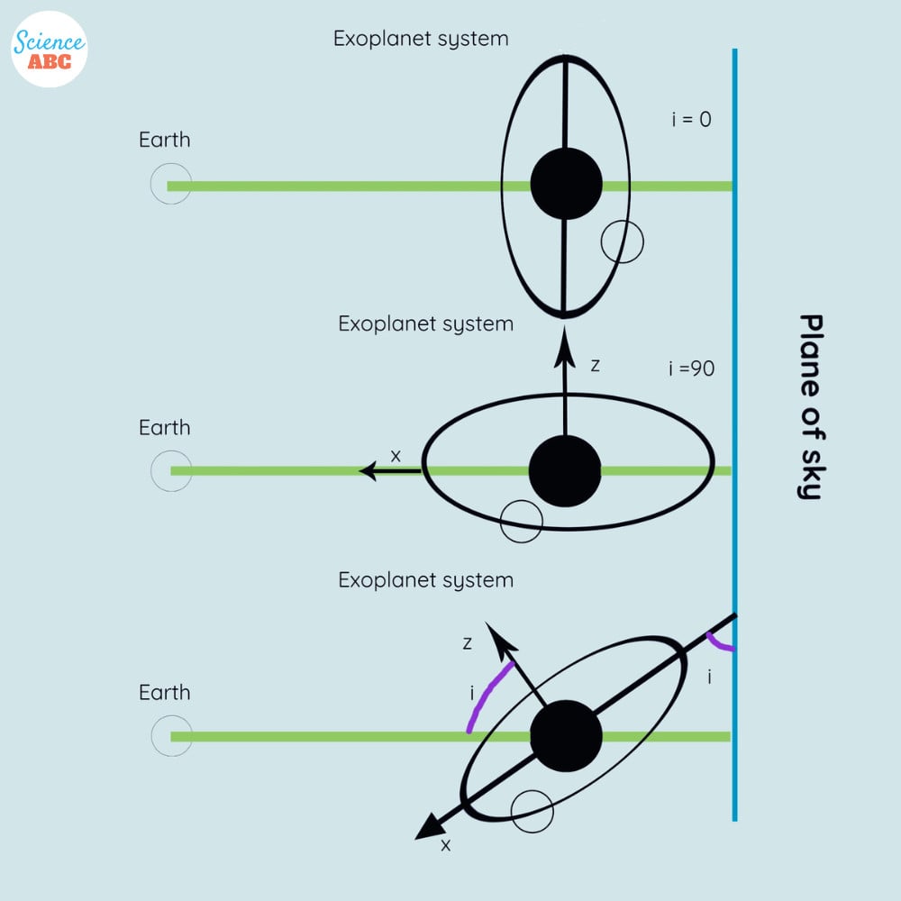 The solid black circle is a host star, while the one that rotates around it is an exoplanet. The angle denoted by ‘i’ is the inclination angle. This angle describes how inclined the exoplanet’s orbit is from our (Earth’s) line of sight.